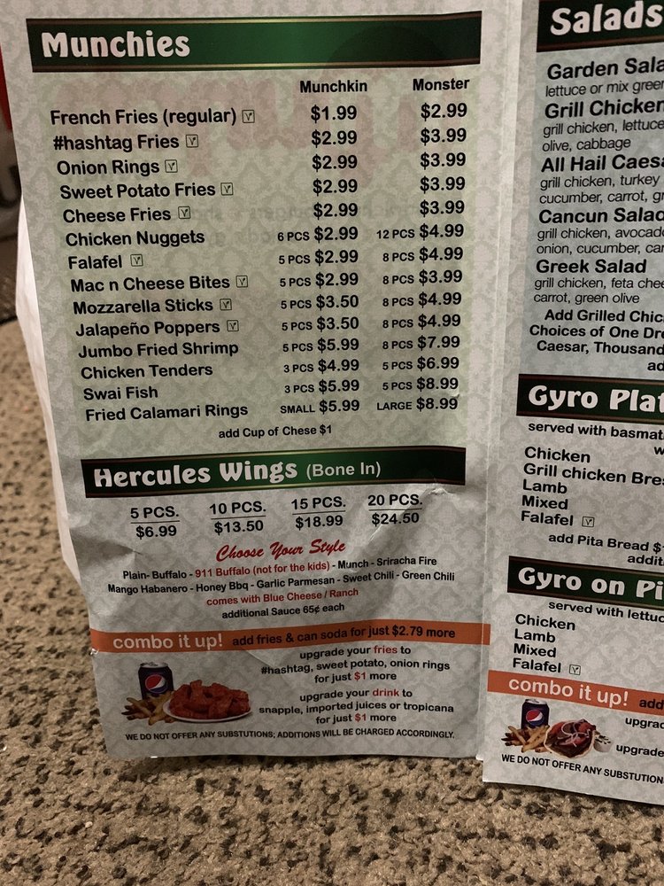 Welcome to Munch, where burgers meet new American flavors in a Halal setting. Located in Forest Hills, NY, Munch offers a variety of options for all food lovers. Whether you're looking for a casual lunch, dinner, or a late-night snack, Munch has got you covered. The menu boasts a range of gyro platters, appetizers, and the famous Hercules Wings.